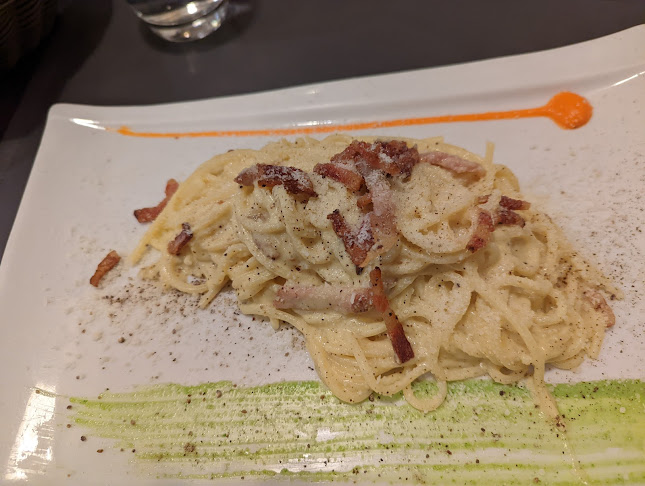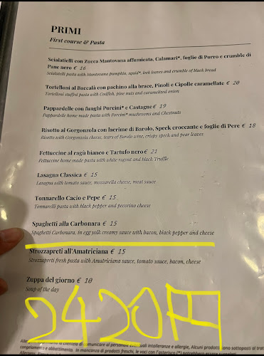 Il menù? Ah, qui c’è da divertirsi! Trovi piatti di carne, pesce, e anche opzioni vegane e vegetariane. La carbonara è forse un po’ troppo “cotta” per alcuni, ma quelle pizze… sono davvero fantastiche! Ti lasciano senza parole. E il tiramisù? Un vero capolavoro, come confermato da più di un cliente.